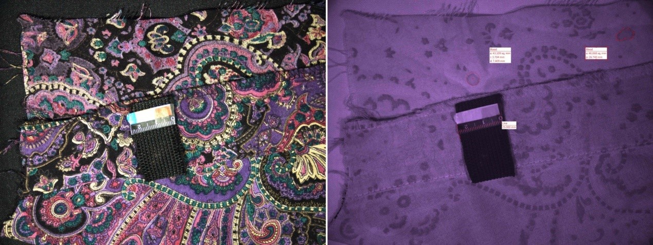 白光条件下物证的原始面貌 红外成像条件下疑似血迹的显现